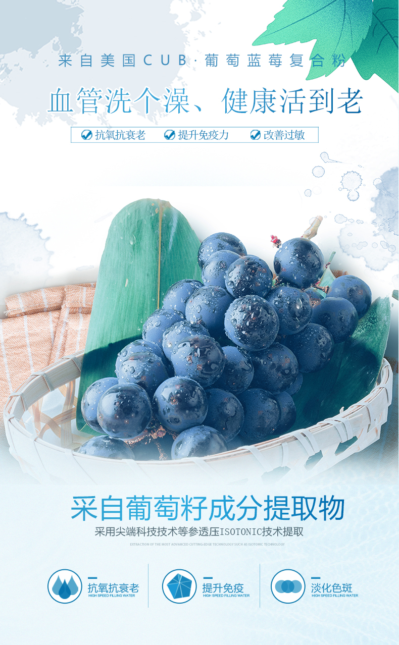 產(chǎn)品簡(jiǎn)介:CUB葡萄藍(lán)莓復(fù)合粉的主要原料:葡萄籽提取物,藍(lán)莓提取物。其中含有豐富的氨基酸、維生素以及多種礦物質(zhì)等營(yíng)養(yǎng)成分,葡萄籽提取物可有效清除體內(nèi)多余自 由基,具有抗氧化、美容護(hù)膚、緩解過(guò)敏等功效。藍(lán)莓籽具有抗氧化、促進(jìn)新陳代謝等功效。藍(lán)莓籽的營(yíng)養(yǎng)價(jià)值非常廣泛,其中含有氨基酸、維生素、鈣離子、礦物質(zhì)以及黃酮類等多種營(yíng)養(yǎng)元素。